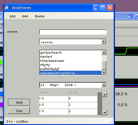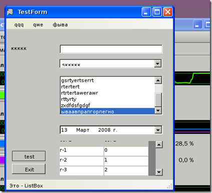 Нижний контрол на форме - DataGridView, зелёная линия справа - график загрузки процессора (скачок загрузки произошёл в момент изменения размеров формы до появления scrollbar'а на гриде).